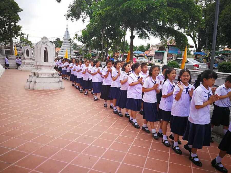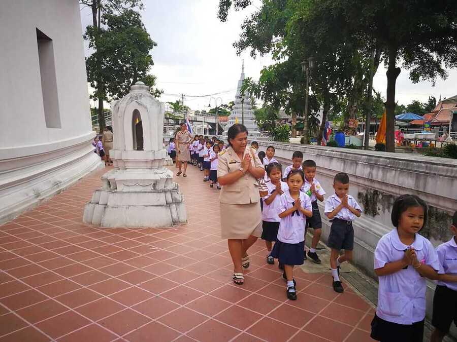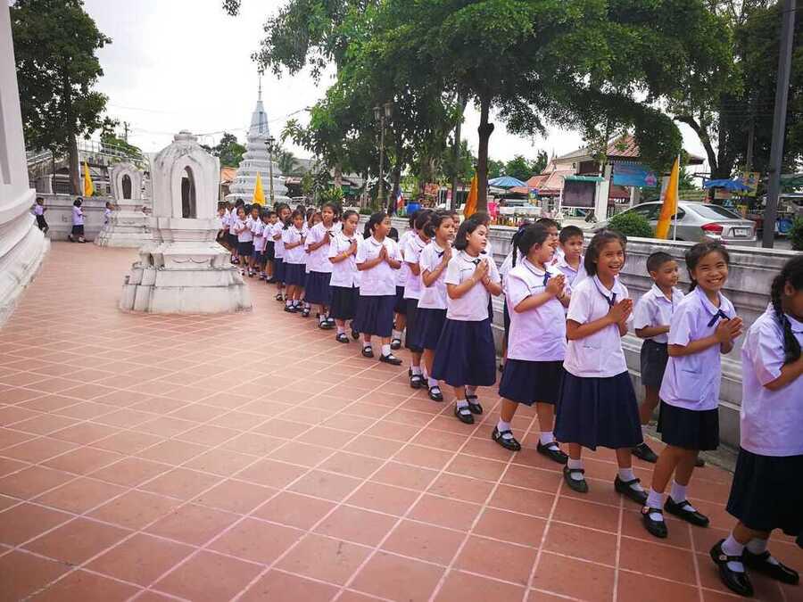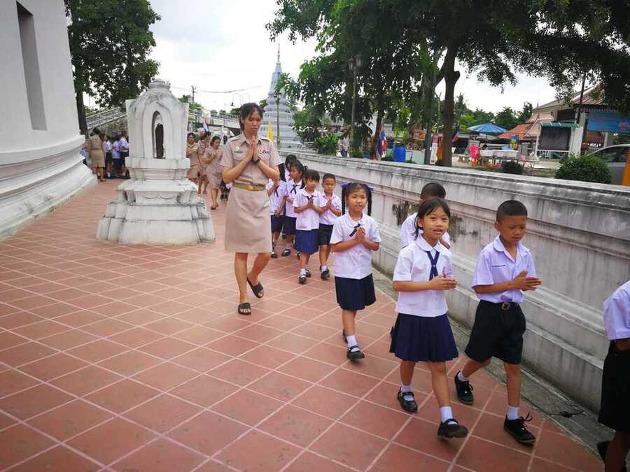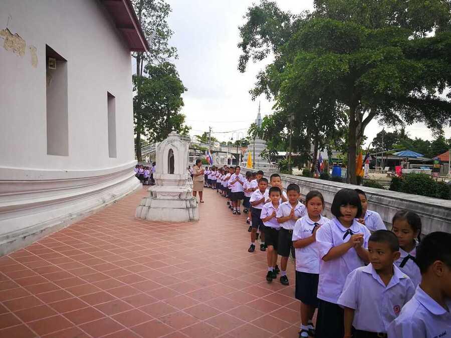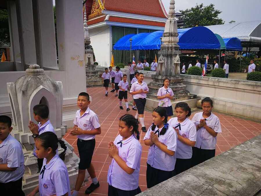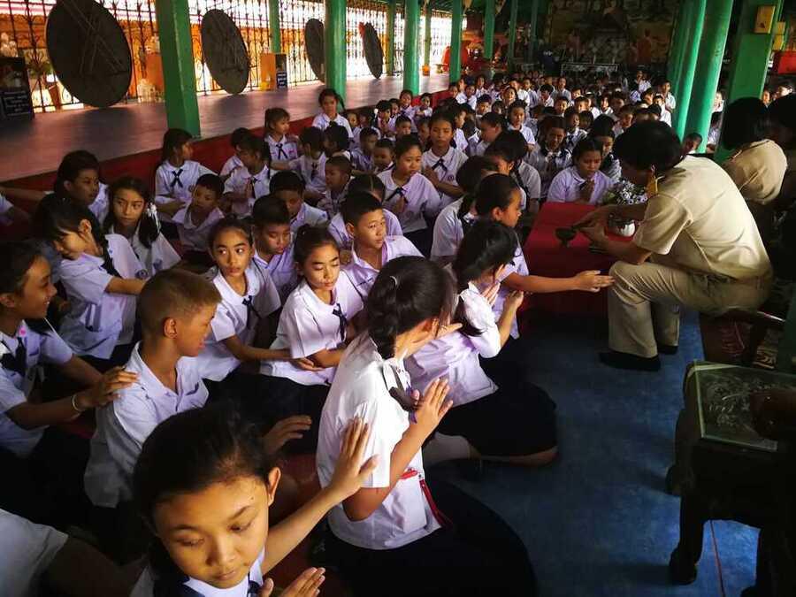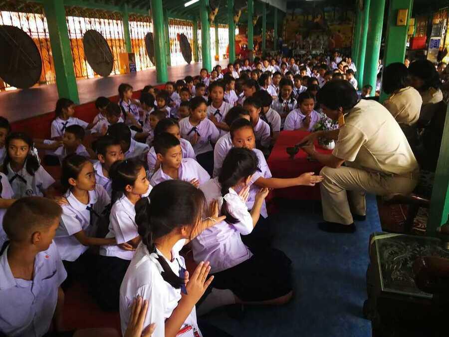 นักเรียนได้มีส่วนร่วมฝึกปฏิบัติเรียนรู้ สืบสานวัฒนธรรมอันดีงามที่บรรพบุรุษของเราได้รักษาไว้