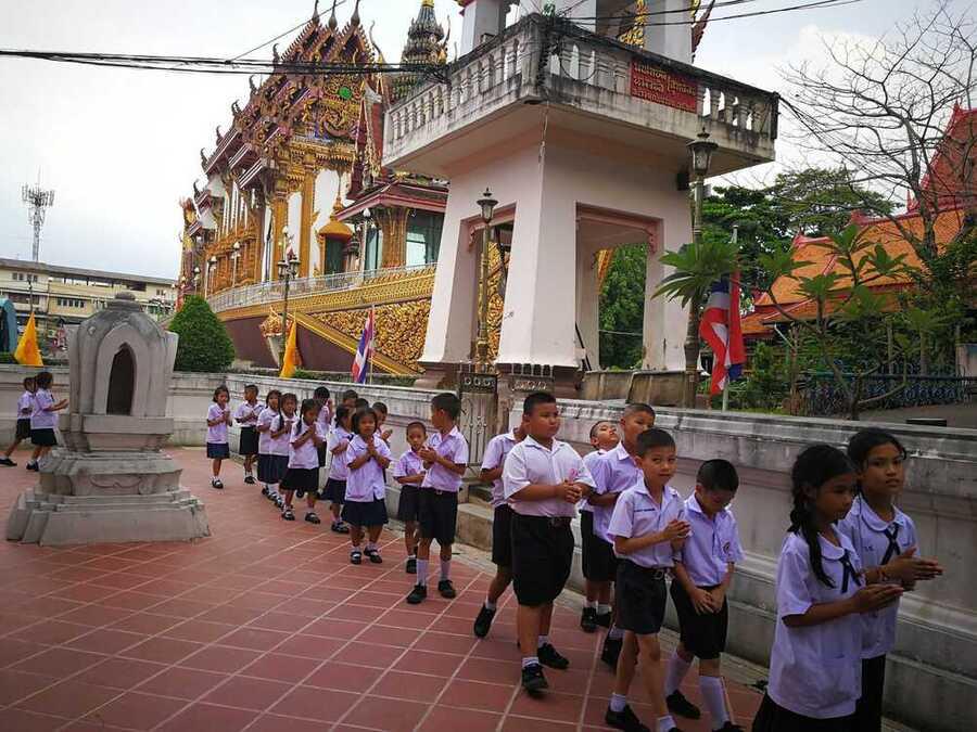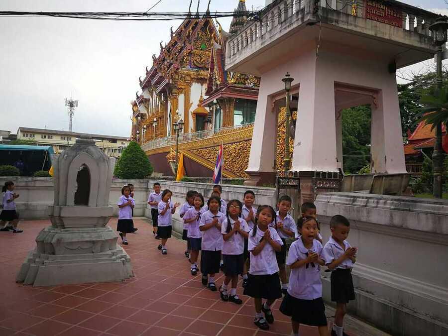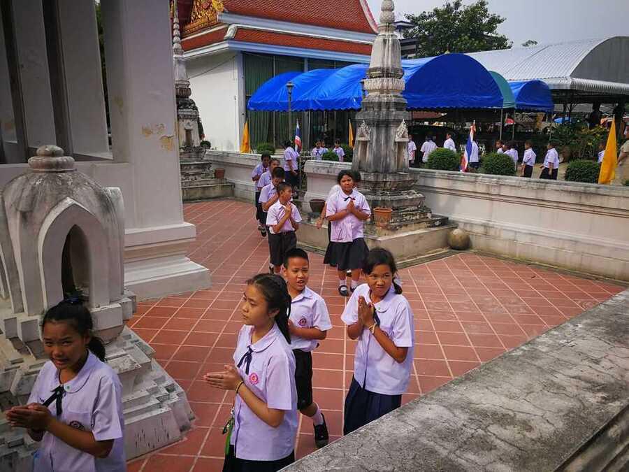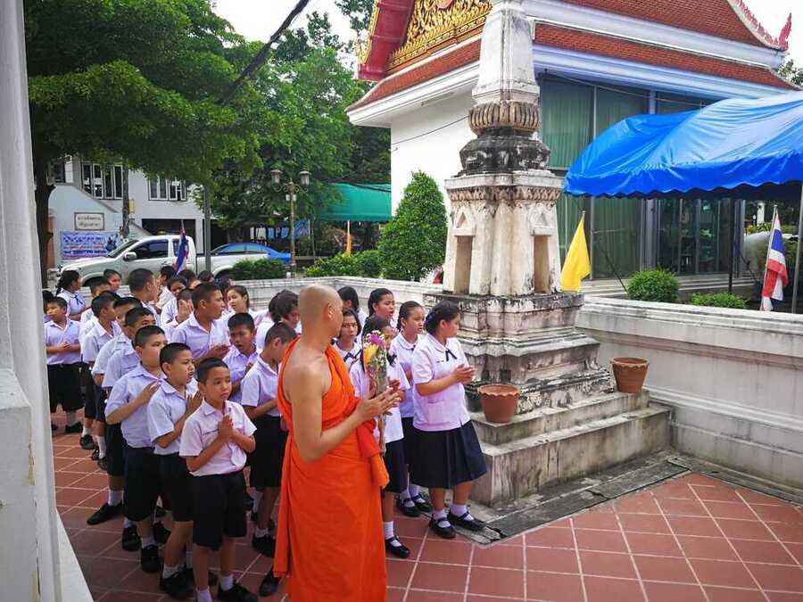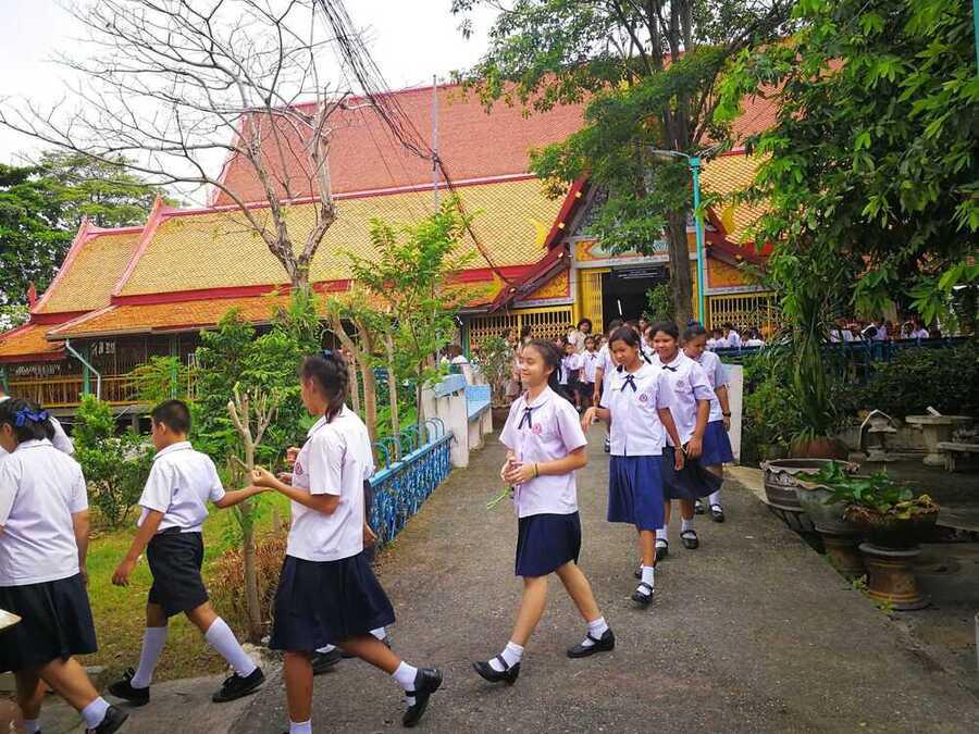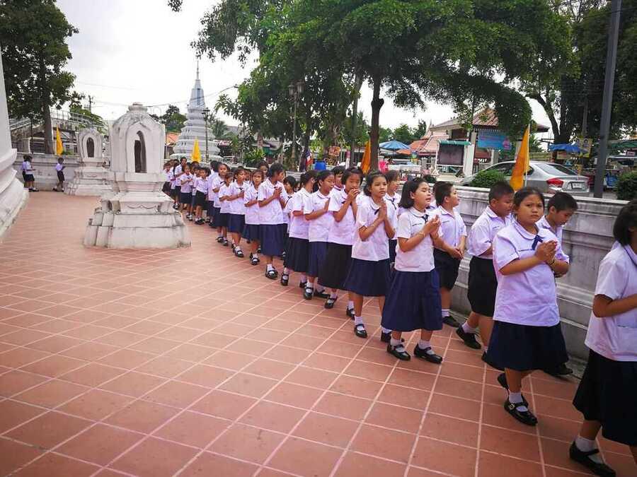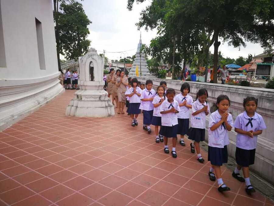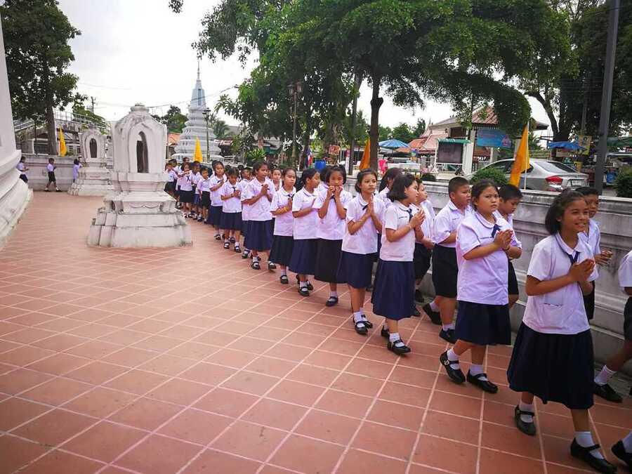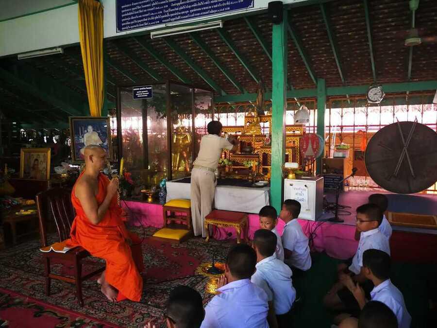 นักเรียนได้มีส่วนร่วมฝึกปฏิบัติเรียนรู้ สืบสานวัฒนธรรมอันดีงามที่บรรพบุรุษของเราได้รักษาไว้