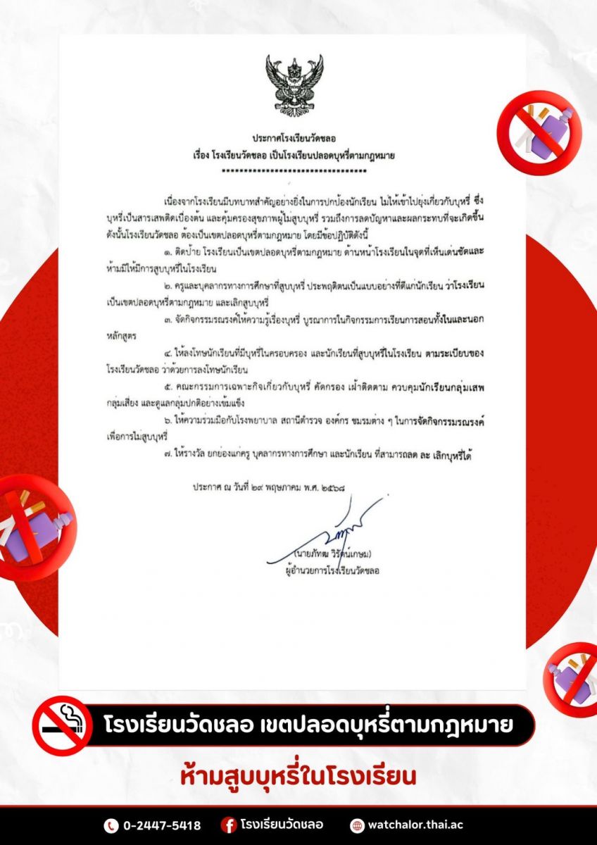 โรงเรียนวัดชลอเขตปลอดบุหรี่