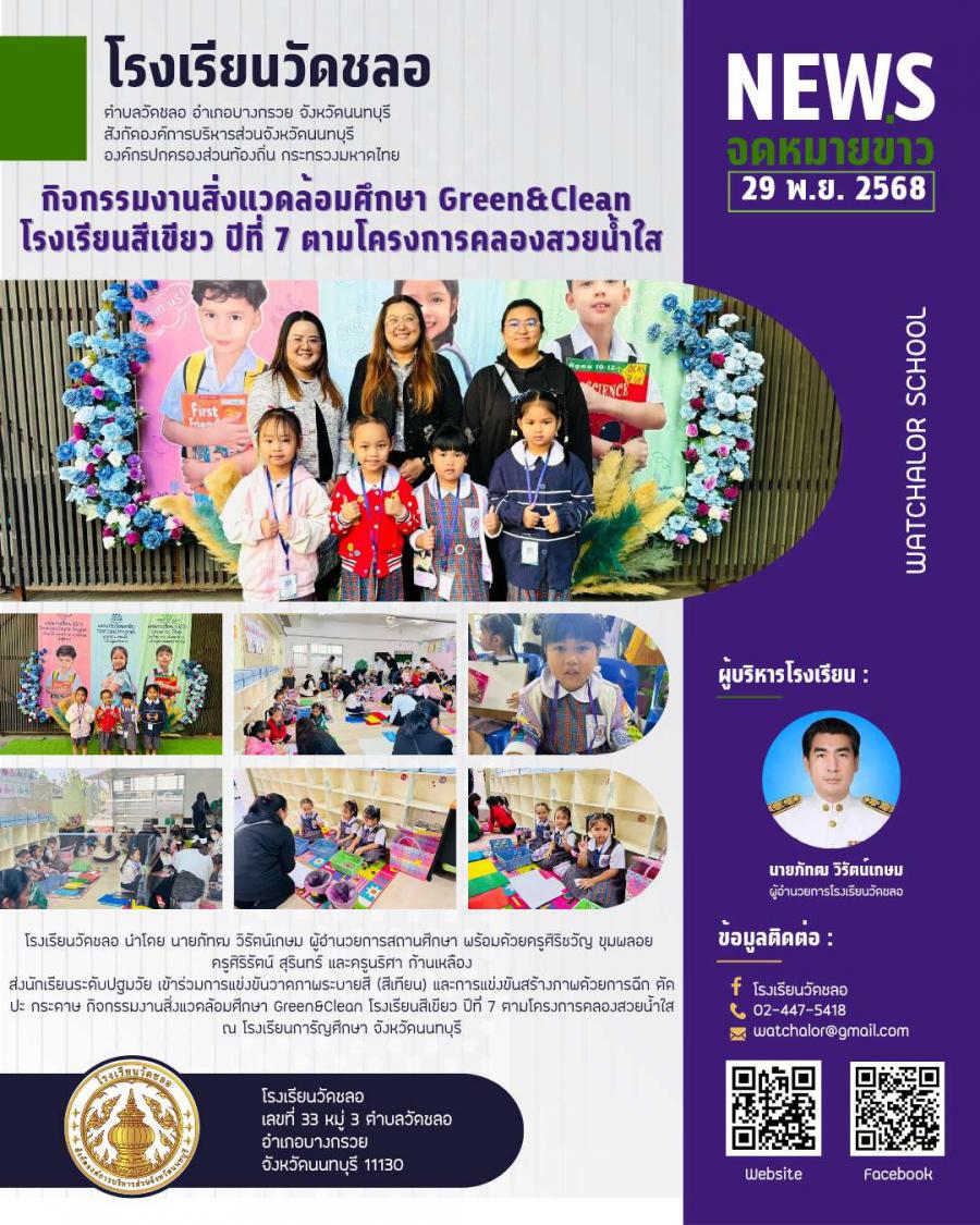 กิจกรรมงานสิ่งแวดล้อมศึกษา Green&Clean โรงเรียนสีเขียว ปีที่ 7 ตามโครงการคลองสวยน้ำใส