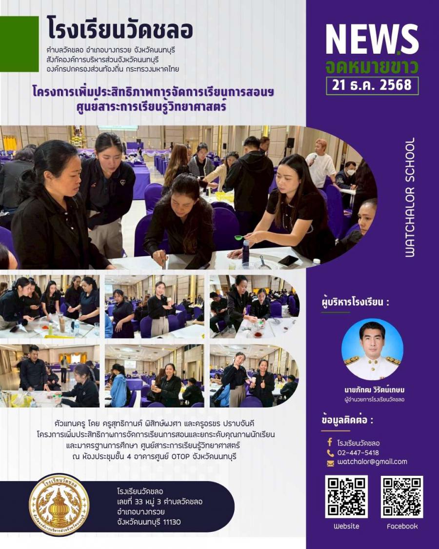 โครงการเพิ่มประสิทธิภาพการจัดการเรียนการสอนและยกระดับคุณภาพนักเรียนและมาตรฐานการศึกษา ศูนย์สาระการเรียนรู้วิทยาศาสตร์