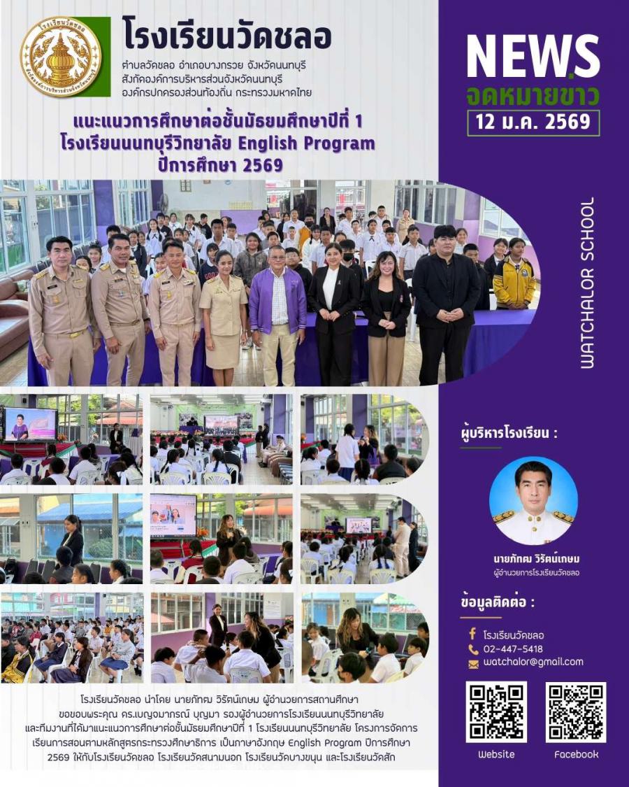 แนะแนวการศึกษาต่อชั้นมัธยมศึกษาปีที่ 1 โรงเรียนนนทบุรีวิทยาลัย English Program