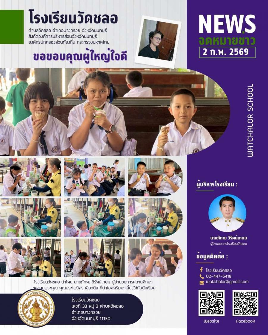 ขอขอบพระคุณ คุณประไพจิตร เขียวนิล ที่นำไอศครีมมาเลี้ยงให้กับนักเรียน