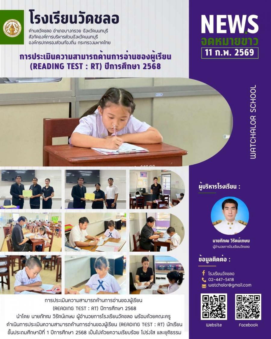 การประเมินความสามารถด้านการอ่านของผู้เรียน (READING TEST : RT) ปีการศึกษา 2568