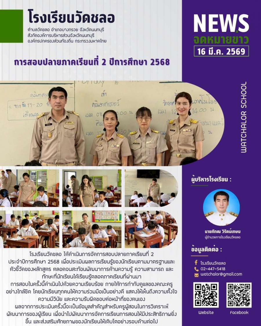 การสอบปลายภาคเรียนที่ 2 ปีการศึกษา 2568
