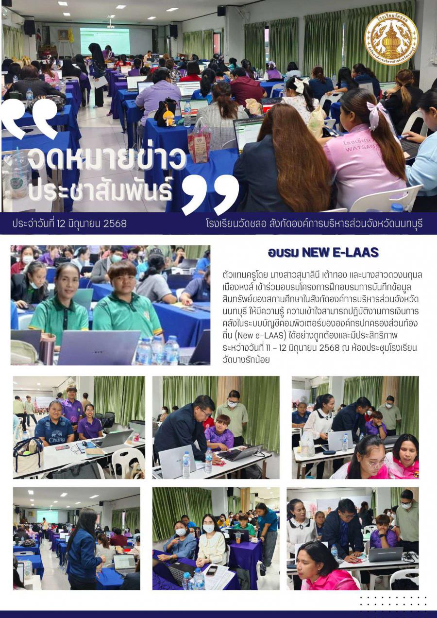 ตัวแทนครูโดย นางสาวสุมาลินี เต้าทอง และนางสาวดวงนฤมล เมืองหงส์ เข้าร่วมอบรมโครงการฝึกอบรมการบันทึกข้อมูลสินทรัพย์ของสถานศึกษาในสังกัดองค์การบริหารส่วนจังหวัดนนทบุรี ให้มีความรู้ ความเข้าใจสามารถปฏิบัติงานการเงินการคลังในระบบบัญชีคอมพิวเตอร์ขององค์กรปกครองส่วนท้องถิ่น (New e-LAAS) ได้อย่างถูกต้องและมีประสิทธิภาพ ระหว่างวันที่ 11 - 12 มิถุนายน 2568 ณ ห้องประชุมโรงเรียนวัดบางรักน้อย