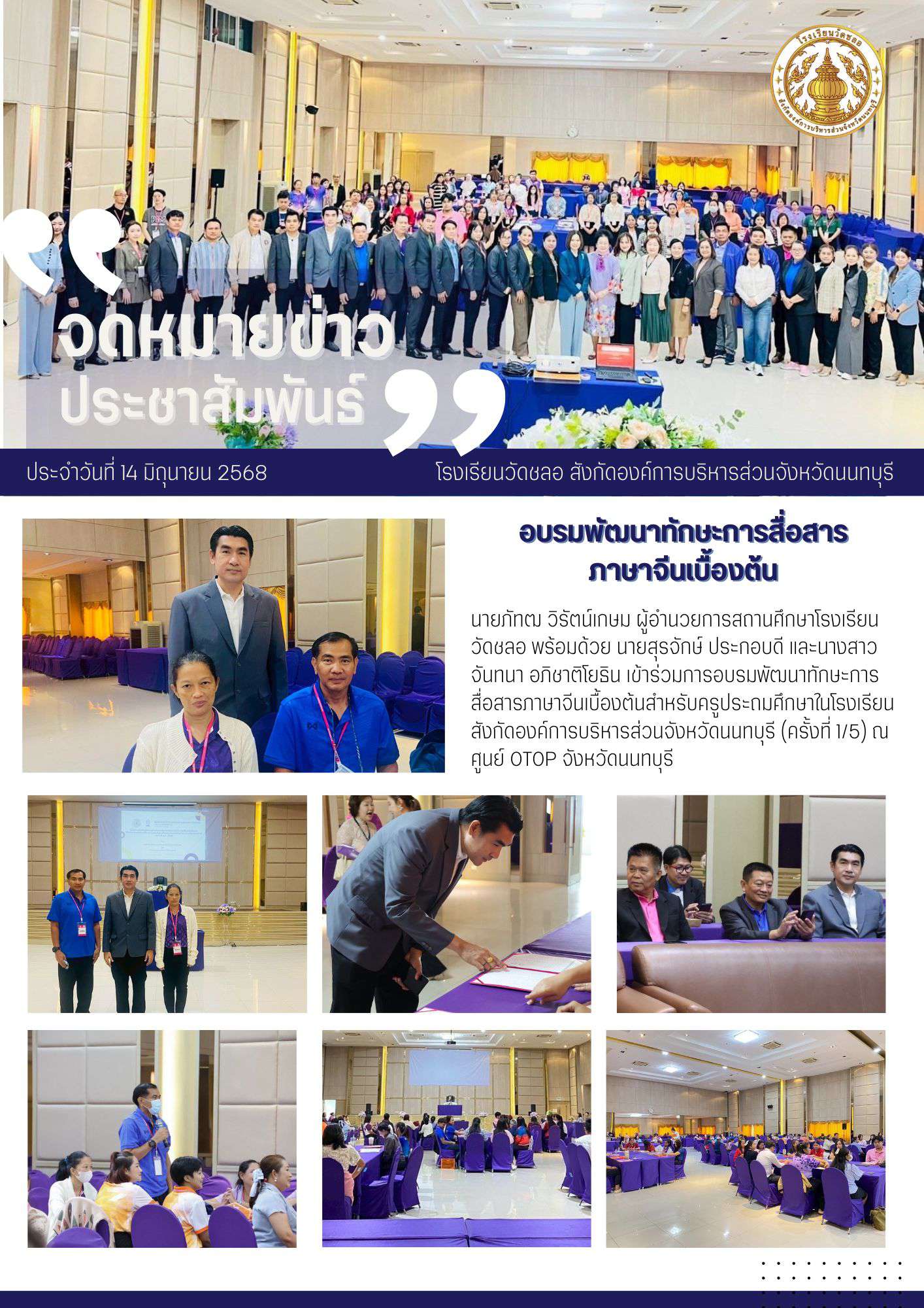 นายภัทฒ วิรัตน์เกษม ผู้อำนวยการสถานศึกษาโรงเรียนวัดชลอ พร้อมด้วย นายสุรจักษ์ ประกอบดี และนางสาวจันทนา อภิชาติโยธิน เข้าร่วมการอบรมพัฒนาทักษะการสื่อสารภาษาจีนเบื้องต้นสำหรับครูประถมศึกษาในโรงเรียนสังกัดองค์การบริหารส่วนจังหวัดนนทบุรี (ครั้งที่ 1/5) ณ ศูนย์ OTOP จังหวัดนนทบุรี