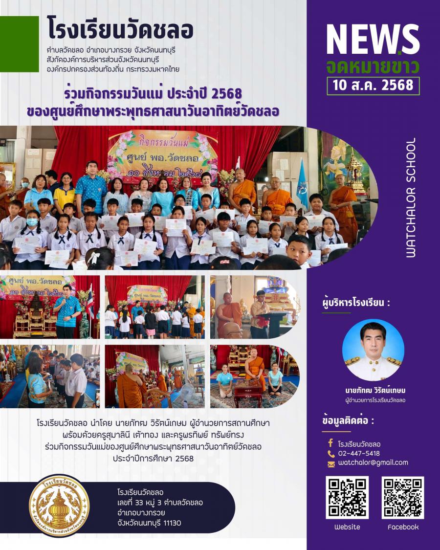 ร่วมกิจกรรมวันแม่ของศูนย์ศึกษาพระพุทธศาสนาวันอาทิตย์วัดชลอ ประจำปีการศึกษา 2568