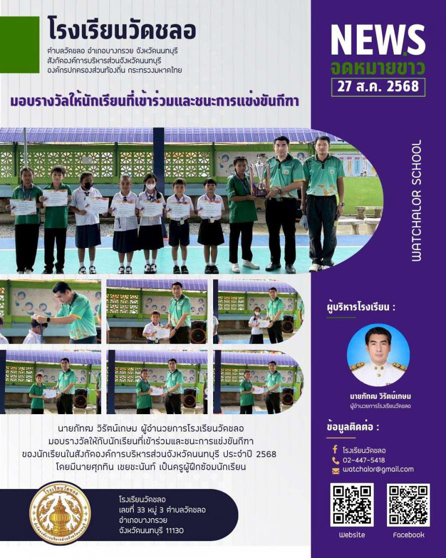 มอบรางวัลให้กับนักเรียนที่เข้าร่วมและชนะการแข่งขันกีฑา