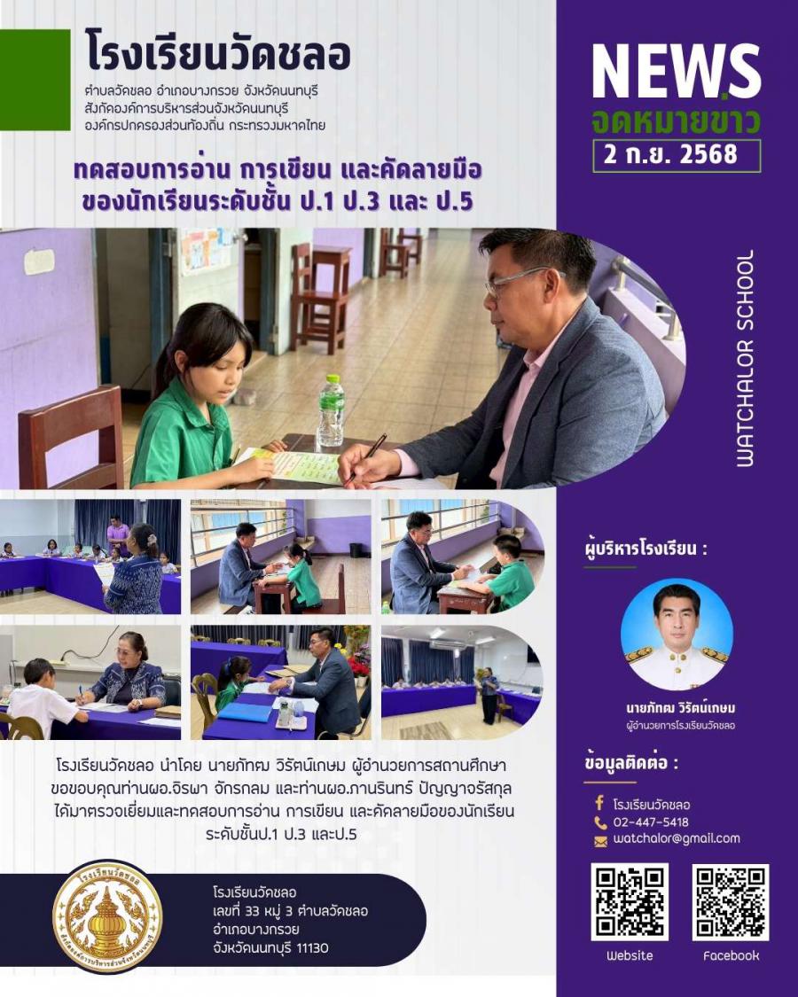 ทดสอบการอ่าน การเขียน และคัดลายมือของนักเรียนระดับชั้นป.1 ป.3 และป.5