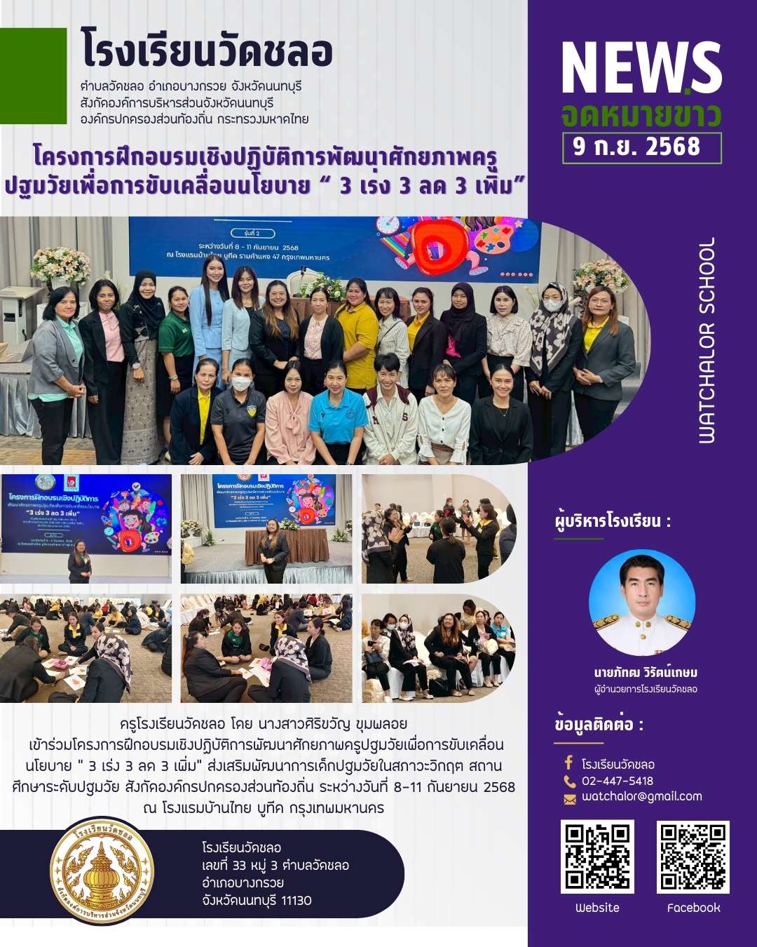 เข้าร่วมโครงการฝึกอบรมเชิงปฏิบัติการพัฒนาศักยภาพครูปฐมวัยเพื่อการขับเคลื่อนนโยบาย ? 3 เร่ง 3 ลด 3 เพิ่ม?