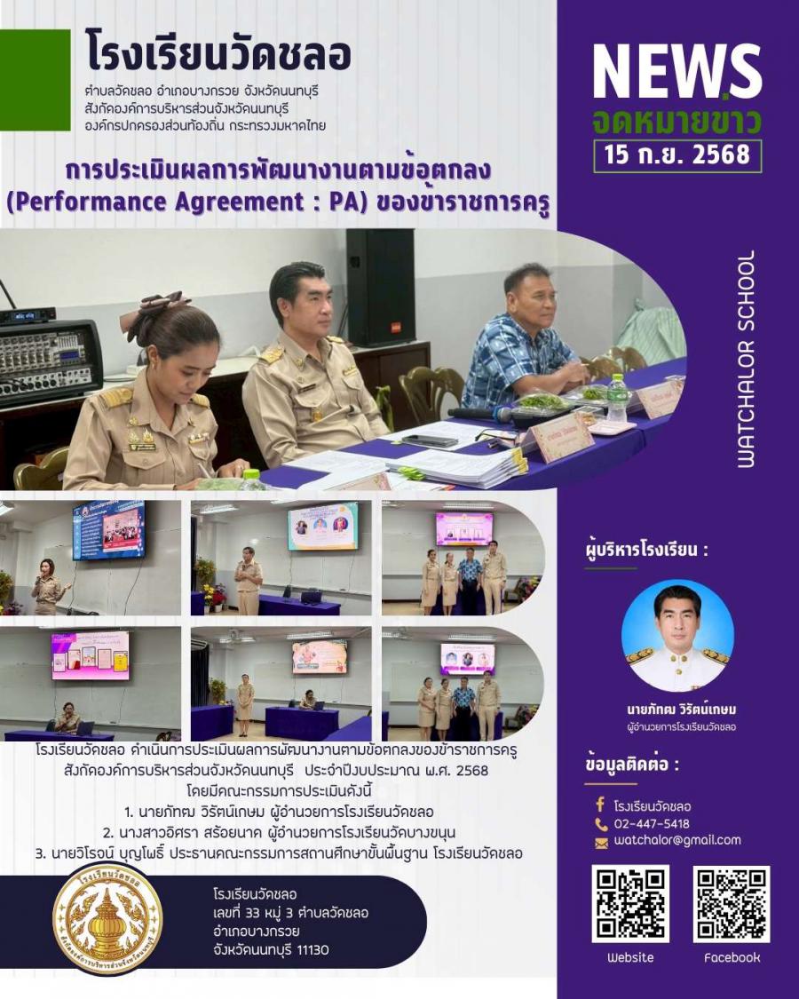 การประเมินผลการพัฒนางานตามข้อตกลง (Performance Agreement : PA) ของข้าราชการครู ปีงบประมาณ 2568