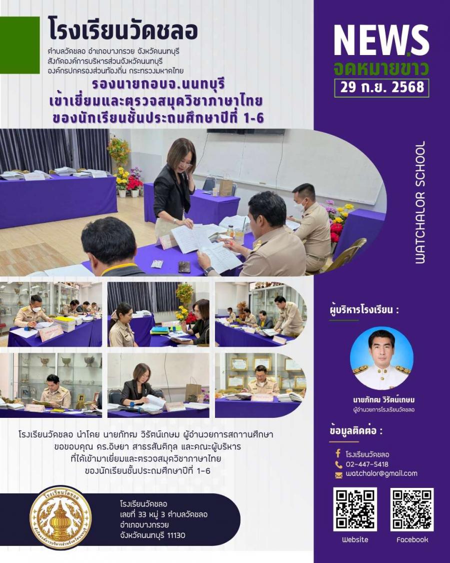 รองนายกอบจ.เข้ามาเยี่ยมและตรวจสมุดวิชาภาษาไทย ของนักเรียนชั้นประถมศึกษาปีที่ 1-6